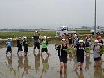 部屋小学校の北にある田んぼに児童19人で田植えを行いました。 児童は「横一列になってまっすぐ丁寧に植えてください。」と指導していただきました。30分ほどで田植えは終わりました。 児童からは「田んぼの中に入るのも田植えをするのも初めてで、大変だった。」「苗をまっすぐ植えることはできなかったけど楽しかった。」などの感想がありました。