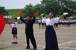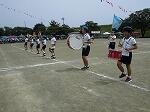 「運動会の歌」を精一杯大きな声で歌いました。紅組・白組ともに気合いがみなぎっていました。紅組団長は三田さん、白組団長は毛塚さんです。両団長が皆をまとめ、とも素晴らしい応援合戦でした。