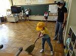 今回、国や市のマニュアルが改訂され、子どもたちが清掃をすることができるようになりました。朝の活動では、清掃班ごとにめあてや役割を話し合いました。清掃の時間になると、みんなきちんと集まって、一生懸命掃除をすることができました。