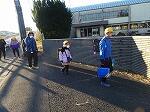 班長さんを先頭にきちんと一列で歩いています。信号を渡る班は、必ず手を上げて横断し、停まってくださった車に向かって一礼しています。また、学校の敷地に入っても、列を崩さないところは、本校児童のすばらしいところです。