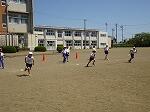 最後は、3人のグループで折り返しリレーで練習をしました。繰り返すたびにタイムが縮んでいくので、子どもたちも意欲を高めていました。
