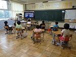 1年生は、会議ができるアプリを使って画面に友達全員の顔が見られるので喜んでいました。
