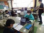 タブレット端末の使い方では、オンライン授業にも対応できるように、国語や理科の授業で活用したり、友達の描いた作品を見せ合ったりする授業をしています。使い方に慣れている子どもたちが、うまくいかない子どもたちにやさしく教えてくれる姿も見られました。