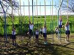 次に、トラック半周をするバトンパスの練習です。半周するだけでもがんばっていましたが、誰ひとりバトンを落とすことなく、めあてを達成できました。