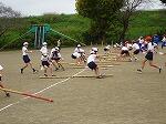 3・4年生は、ペアでボールや棒を運ぶゲームで盛り上がりました。