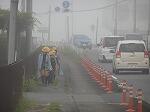 今朝は、一面に朝もやが立ちこめ、視界が悪くなっていました。子どもたちは、スクールバスや登校班で安全に登校することができました。