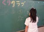 ものづくりクラブでは、黒板に描いたイラストをバックに撮ることができました。