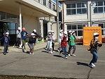 まず、地震による火災発生を想定して避難訓練を行いました。子どもたちは、地震の際に頭を守る行動がとれました。校庭への避難も落ち着いて素早く行動できました。同時に職員室から消防署へ通報するための訓練も実施しました。
