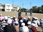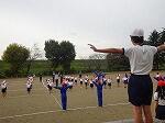 最後は、応援の練習です。応援団はこれまで昼休み等に進んで練習してきました。応援団の気合いの入った声と身振りに、1・2年生はまねをしていました。初めての全体練習でしたが、全校生で一生懸命声を出し、がんばりました。