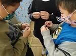 ものづくりクラブでは、せっけん作りの様子を見学しました。溶かしたせっけんに食紅で色を付けて型に入れる工程を興味深く見ていました。