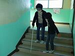最後に、アイマスクをつけた子どもと介助する子どもが、二人一組になって、教室から廊下に出て、階段の上がりおりをする体験をしました。