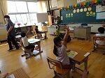 「Hello, world.」という単元で、世界のあいさつの言葉を聞いてまねをしたり、自分の名前を英語で紹介したりしました。アメリカやインドネシア、サウジアラビアなどの国々のあいさつをよく聞いて、ジェスチャーを交えて発音することができました。世界にはいろいろなあいさつがありましたね。