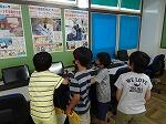 グループに分かれて、校内のいろいろなところを探検しました。「失礼します。」「がっこうたんけんにきました。」2年生が先頭であいさつをしてくれたので、1年生もしっかりあいさつができました。「もっきんがあるよ。」「教室にめだかがいるね。」「校長室は写真がいっぱいだね。」2年生は、去年、自分たちがしてもらったように優しく案内してくれました。初めて入る教室に、1年生は、わくわく、どきどきでした。