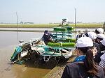 子どもたちは、田植えの機械がGPSの自動運転で作業を進めている様子や苗箱の苗を触るなど、現場でしかできない貴重な体験をさせていただきました。また、渡邊さんにたくさんの質問をして、教えていただき、多くを学ぶことができました。