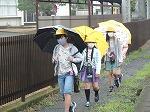 今日も朝から雨がふっていました。昨日ほどの量ではなかったので、徒歩で登校する子どもたちが多く見られました。