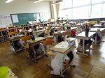 次に、放送で地震が起きたことを伝えると、子どもたちは黙って机の下に入り、頭を守る姿勢になりました。