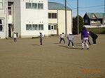 次々に校庭に出てきては、なわとびやドッチボール、ブランコ遊びを始めました。砂場で友達と何か探して楽しんでいる子もいました。