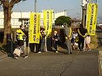 今日は、藤岡こどもネットワークの事業で、朝早くからあいさつ運動が行われました。PTA総務委員、文化団体連絡協議会、藤岡地域教育協議会、育成会、藤岡公民館、学校職員の10名が黄色のタスキ、のぼり旗を手に参加しました。