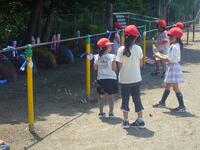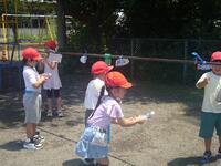 暑い日が続きますが、「ケチャップの入れ物が水鉄砲になった~!!」とみんなで楽しみながら水遊びができました。