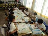 1年図工 スタンプを押し、絵を描いています。