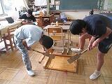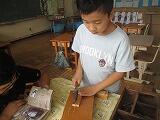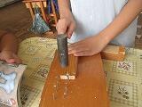 一覧へ のこぎりで切る練習・くぎ打ち練習 投稿日時: 2023/10/03 家中小管理者 片足を乗せて、バランスをとりながら少しずつのこぎりを動かしていきます。 指をいためないように、木片を釘にそえて安定させながら、くぎを打ちます。