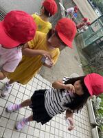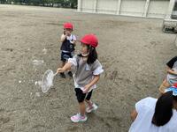 また、うちわの骨組みを使って、一度にたくさんのシャボン玉を作る子もいました。