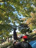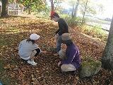 雲一つない気持ちのいい秋晴れの中、せせらぎへ秋さがしに行ってきました。色とりどりの落ち葉をシャワーにしたり、拾ったり、水辺の生き物を探したりしました。上を見上げると紅葉した木々から漏れる光もとてもきれいでした。