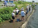 今年も桑家会、遊泉の会の方々にお世話になり、3・4年生がアバンセ裏の用水路で水辺の生き物調査を行いました。子どもたちが入りやすいように水位を低めに、草刈りもしてくださっていたので、網で様々な魚を捕まえることができた子もいました。