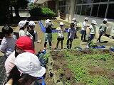 1年生は、アサガオの種をひとりひとり蒔きました。
