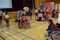 各学年代表者が車いすリレーに乗ったりレーサー体験をしたり、楽しく交流することができました。