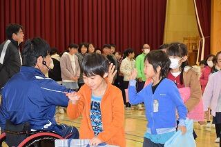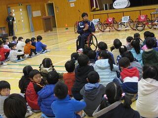 パラリンピックの陸上競技日本代表の永尾嘉章(ながおよしふみ)様をお招きし、交流体験を行いました。