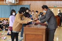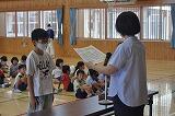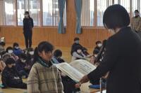 表彰では、下野教育書道展や多読賞、持久走大会で上位入賞した児童の表彰がありました。