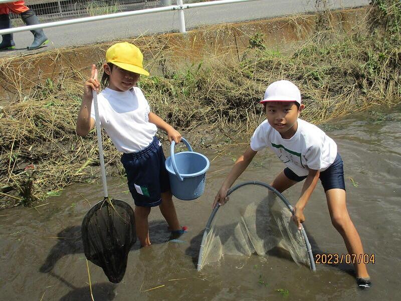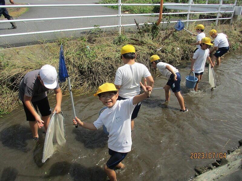 7月7日(木)に3,4年生で水辺の生き物調査に行ってきました!
