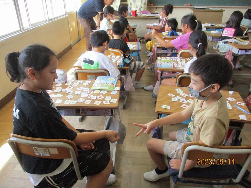 ↑この日は欠席者が多かったので、国語の時間にちょっとしたゲームをしました。