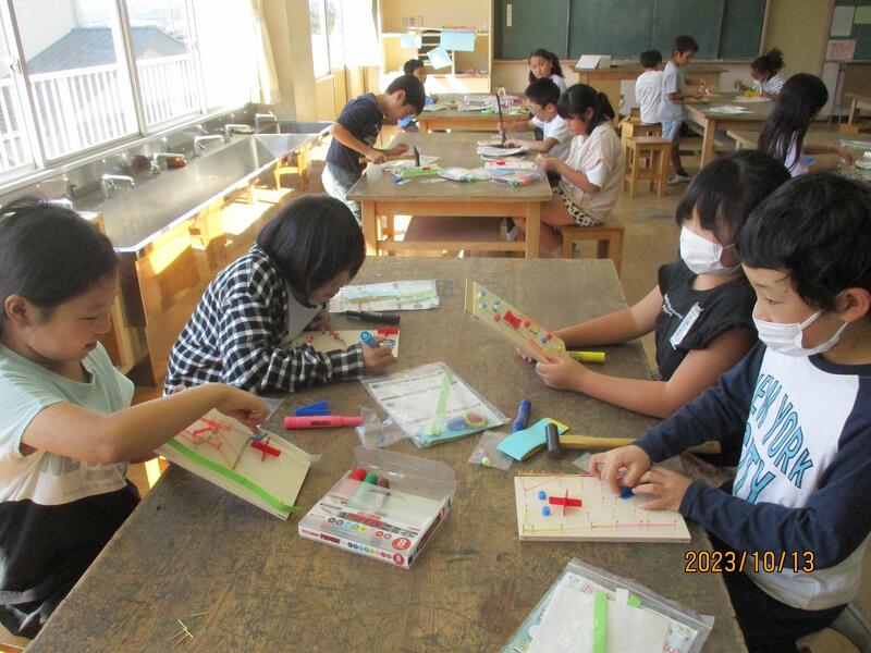 図画工作「トントンくぎ打ち、コンコンビー玉」の学習で、くぎ打ちをしました。