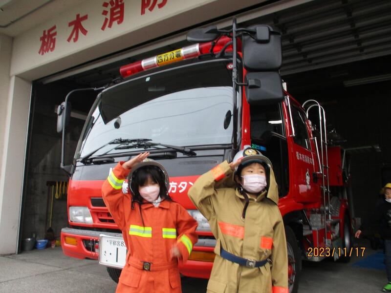 消防車に乗せてもらったり、防火服を着せてもらったりと、貴重な体験をしました。