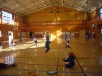 冬休み前の体育では、なわとびを中心に行っています。準備体操の後のサーキットには、マット運動を取り入れています。