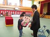 お兄さんお姉さんと 手をつないで入場し ならんで座りました。