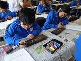 学年部長さんに用意していただいたフレームにおそろいの貝殻を付け