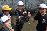 子供たちは、水辺の生き物調査で、たくさんの生き物に触れることができました。