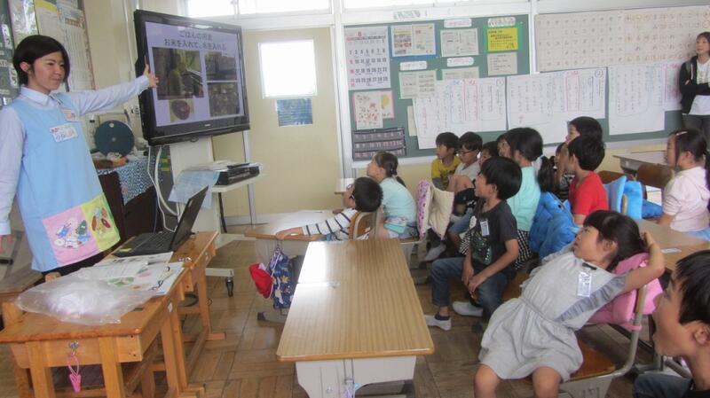 5校時には、栄養士の方々に、給食センターの様子や食事の栄養についての授業を行っていただきました。
