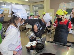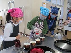 〇家庭科の授業でお茶淹れの実習が行われました。コロナ禍ということもあり、実際にお湯や茶葉などは使わずに行いましたが、楽しんで活動していました。