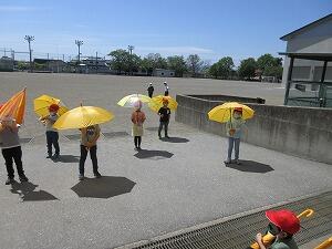 〇かさのさし方や横断歩道の渡り方の勉強をしました。