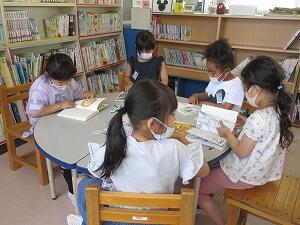 〇図書の先生に本の借り方を教えてもらい、本を借りました。楽しみにしていた子供たちなので、とてもうれしそうにしていました。