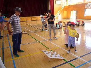 〇10/2(水)、宿さんろく会の皆様と1年生が輪投げをしました。