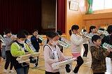 今年度、主指揮を務めた6年生から5年生に指揮棒が渡され、