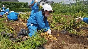 〇6月15日(火)にじゃがいもほりに行ってきました。ビニルをはがした下に、ゴロゴロとじゃがいもがありました。「こんなに大きいよ!」「いっぱいとれたよ!」みんな、夢中になってほりました。ご協力いただいた皆様ありいがとうございました。