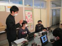 講座の後半では キャタピラ付きのロボットを動かすプログラミングを教えてもらったり