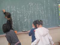 みんなで黒板に言葉を書いてしりとりをしました。黒板がいっぱいになるまで、たくさんの言葉を考えることができました。