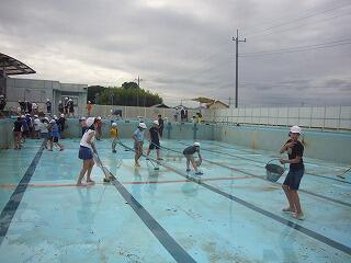 〇6月11日(火)、4・5・6年生でプール清掃を行いました。前日が雨だったので実施が危ぶまれましたが、晴れ間も出て、実施することができました。